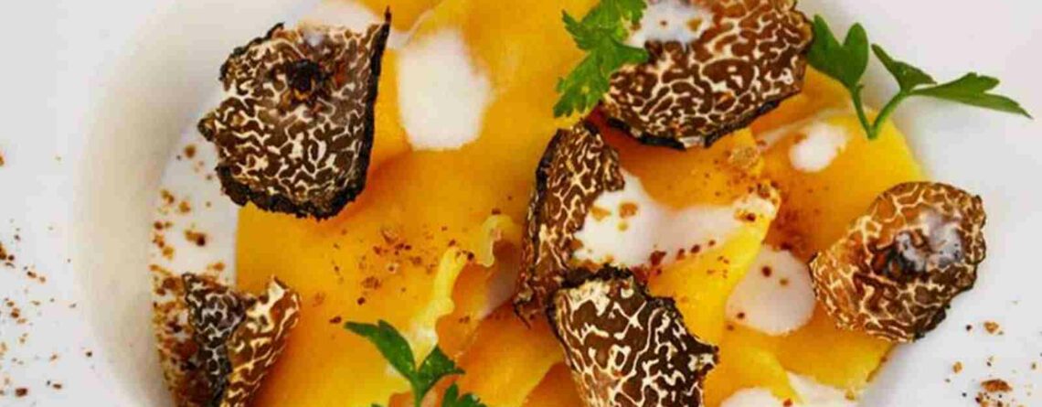 Ingredients egg – pasta200 g flour mix pasta2 eggs1 yolk7 ml extra virgin olive oil1 teaspoon of curcumaIngredients of the filling70 g of stracciatella15 g of parmigiano reggianoSaltPepper30 g of truffleProcedurePut the...