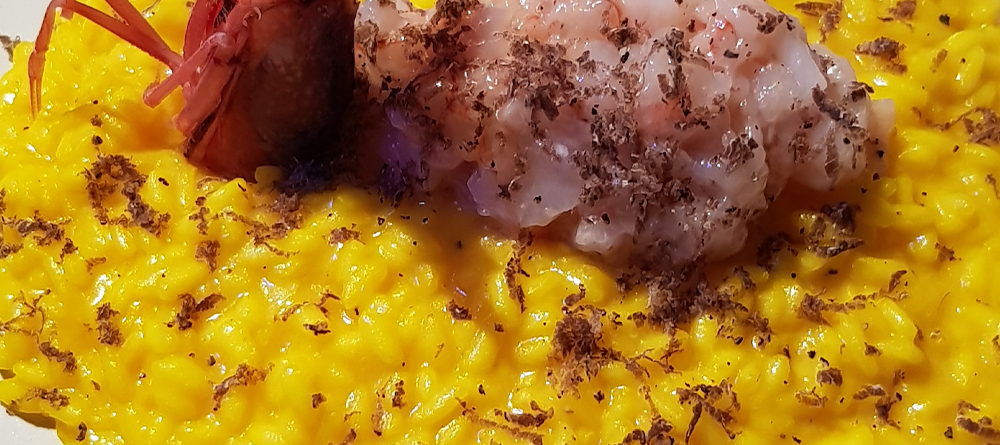 Risotto allo Zafferano con Tartare di Gambero e Tartufo Nero Pregiato