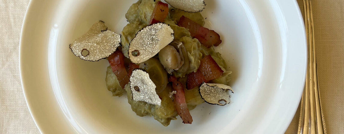 Gnocchi al Tartufo con Fave e Tartufo Scorzone