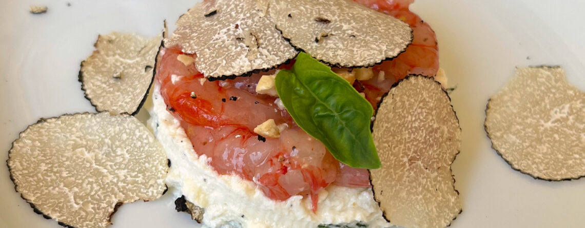 Tartare di Ricotta, Gamberi e Tartufo Scorzone
