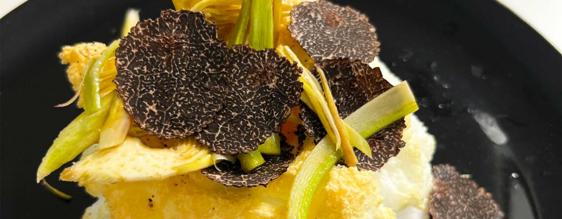 Spumoso di Uova con Carciofi e Tartufo Nero Pregiato