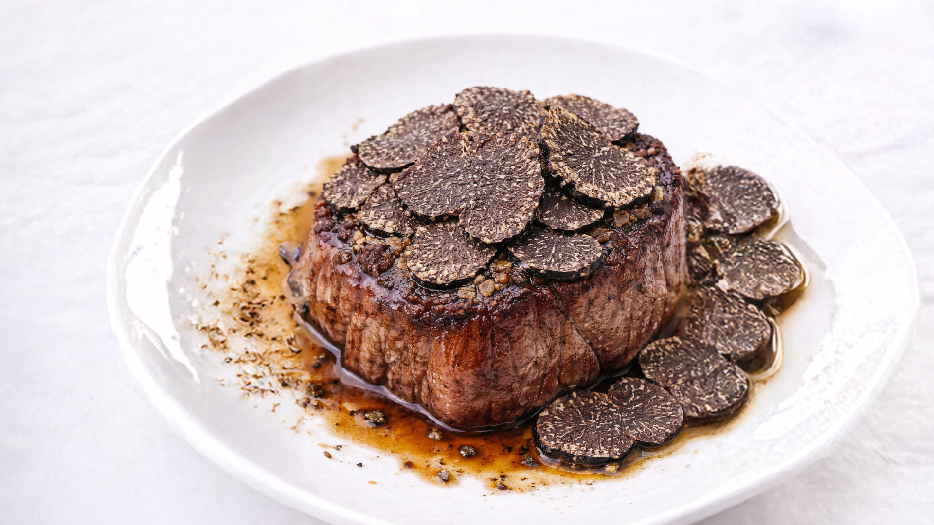 Adagia il filetto sul piatto, nappalo con la riduzione al vino e irrora con il burro al tartufo preparato in precedenza. Completa il piatto affettando il restante Tartufo Nero Pregiato a lamelle generose direttamente sulla carne calda. Un pizzico di sale Maldon sulle lamelle ne esalterà il sapore.