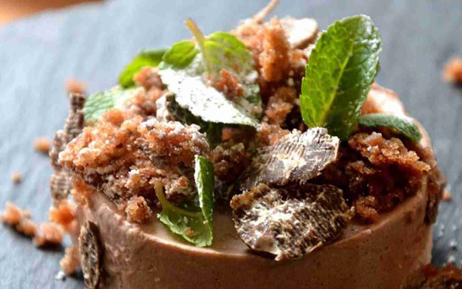 Successivamente, aggiungere il cioccolato sciolto, l’olio di bacche di lentisco, il tartufo: la base del nostro semifreddo è pronta.