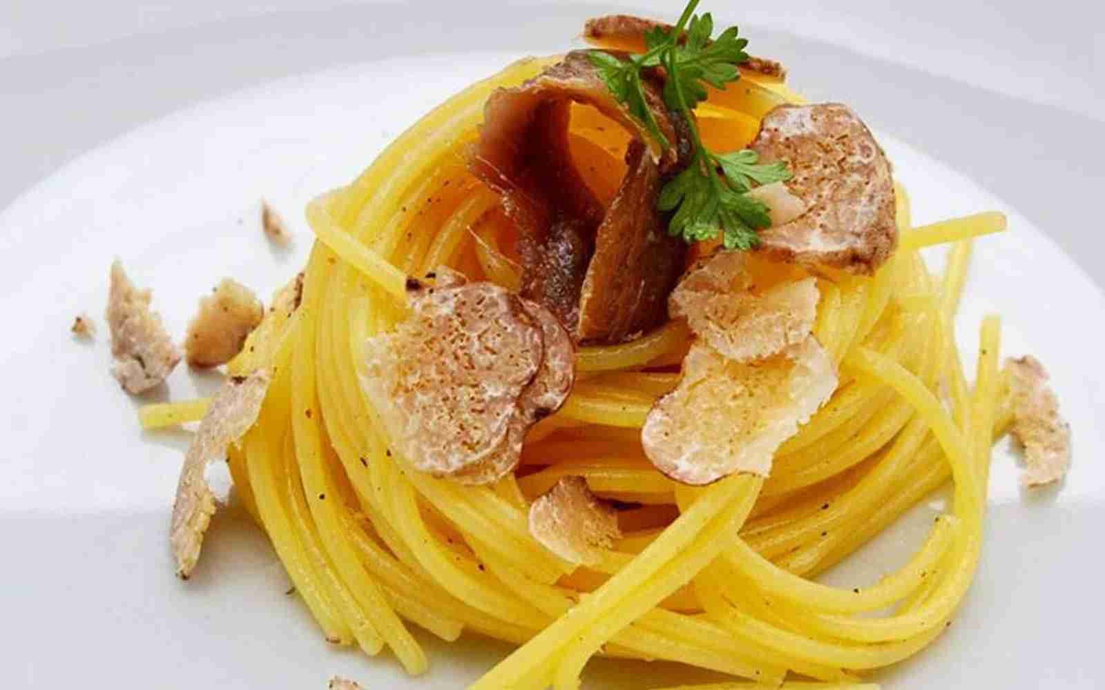 Spaghettone with Cetara Anchovies and Bianchetto Truffle
